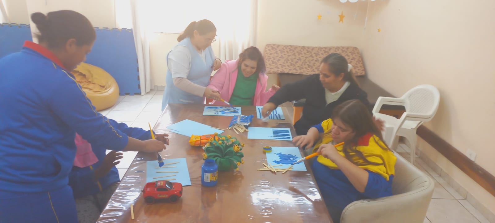 Nas salas de Estimulação, contamos com cuidadores com experiência. Temos como objetivo principal oferecer atendimento especializado ás pessoas com deficiências múltiplas que não estão em idade escolar, organizando e elaborando recursos para a participação efetiva do atendido no ambiente em que está incluído, trabalhando com atividades significativas capazes de promover o desenvolvimento e participação nas atividades de vida diária, proporcionando uma melhor qualidade de vida.